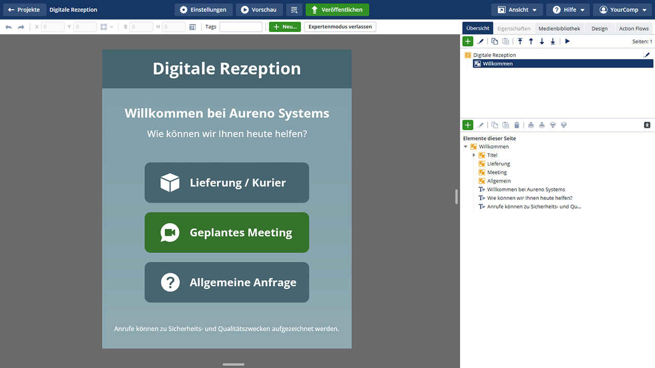 Diese Lösung sorgt für einen effizienten Besucherempfang, erhöht die Sicherheit und demonstriert zugleich den modernen Einsatz von Self-Service-Kommunikation im Unternehmensumfeld.